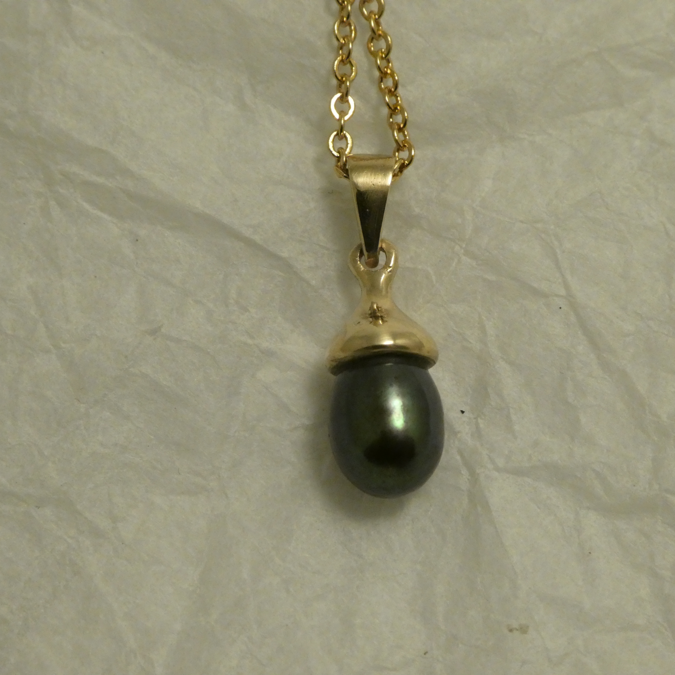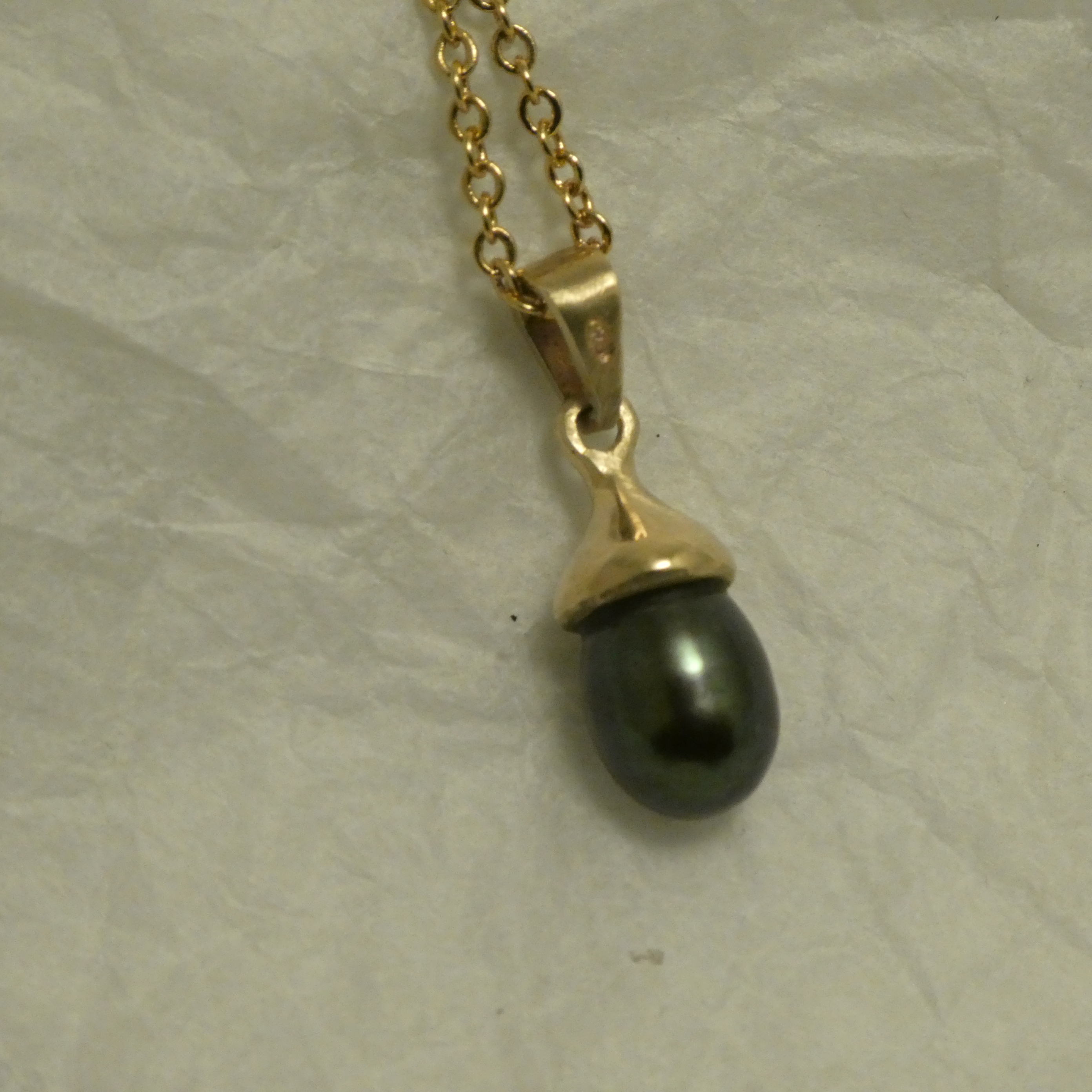 Black Pearl, 7mm teardrop, origin Solomon Islands, in a pendant setting of solid 9ct Gold, created and crafted in Sydney.