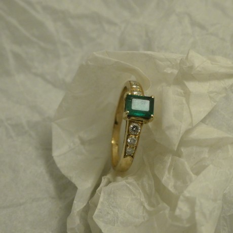 Emerald AGrade Natural Baguette, Handmade 18ct Gold Ring