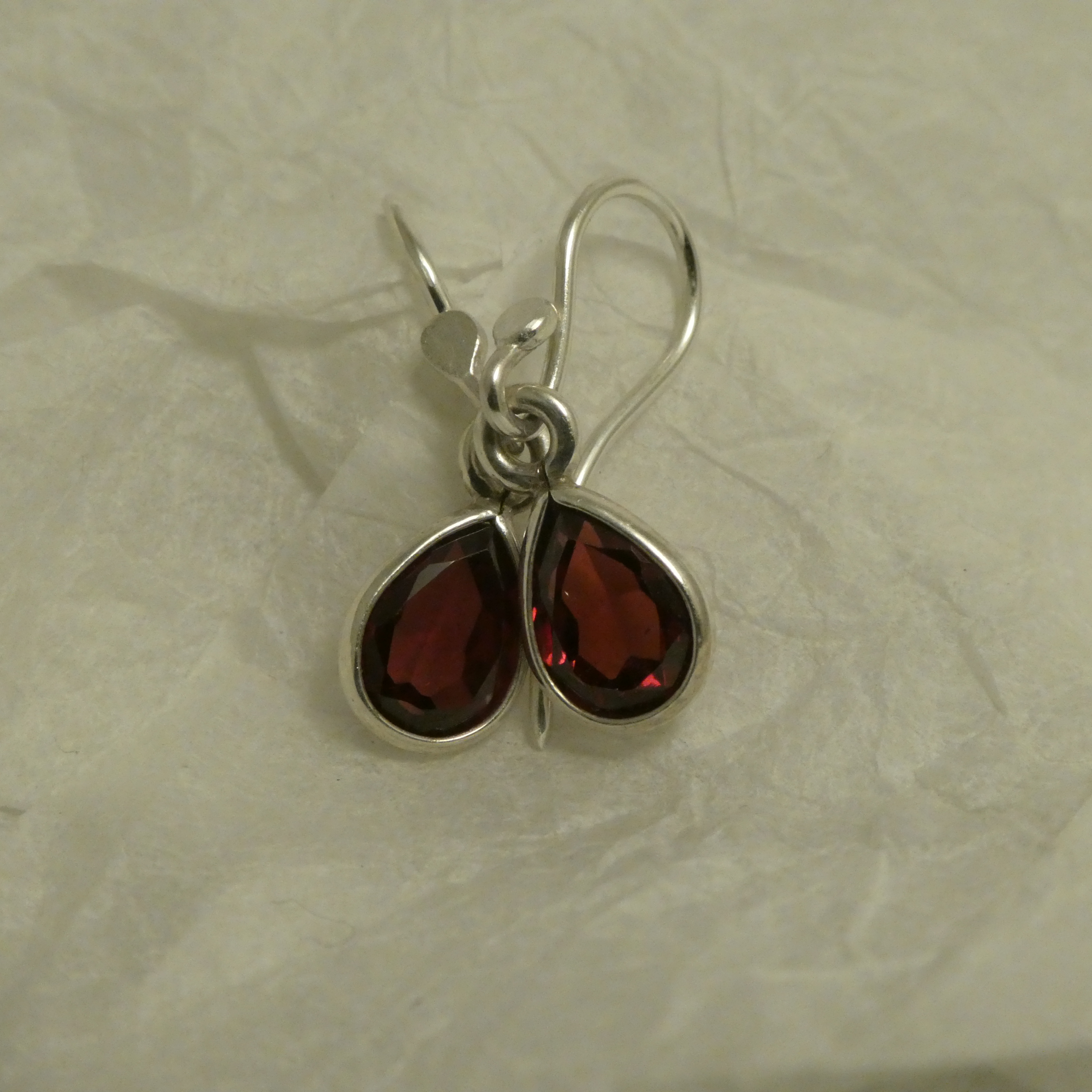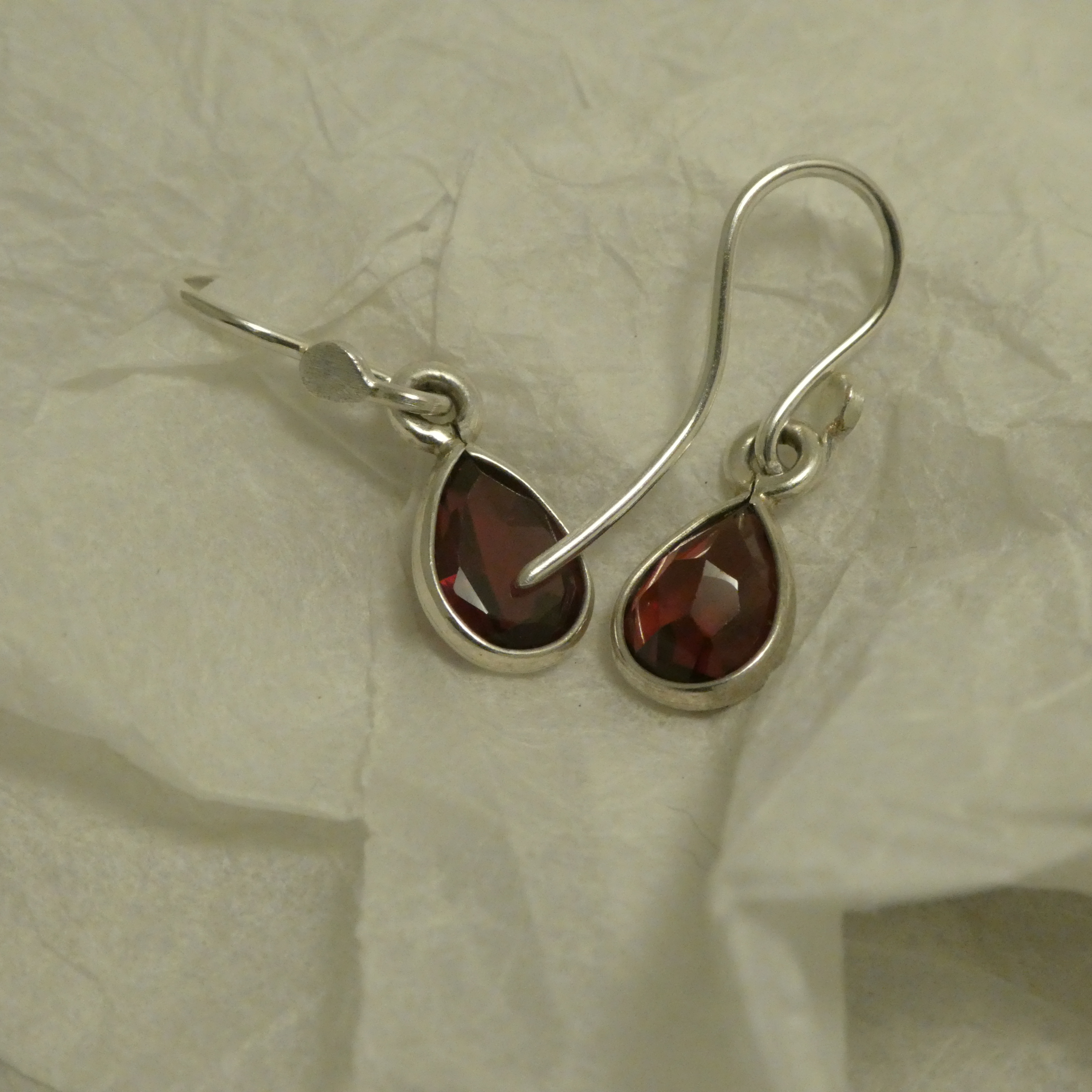 The Silver settings of the above Fine Teardrop Garnets are handmade specifically for these gemstones, simple neat bezels around the gemstone girdles, totally exposing the rear cuts, allowing maximum light penetration.