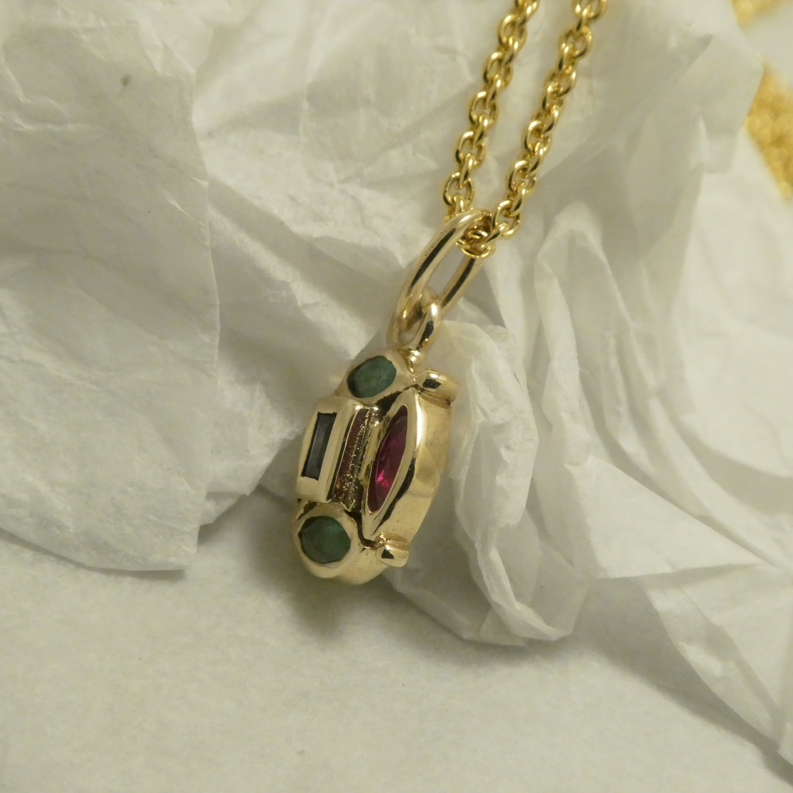 Five Precious Gemstones in a multi-gemstone pendant created and crafted in Sydney.