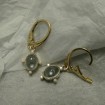 Hung from a pair of elegantly formed 9ct Gold safety hooks, European “Continentals”, to create a very smart pair of unique earrings.