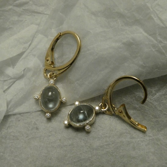 Matched Cabochon Aquamarines, Diamonds, Elegant Gold Earrings