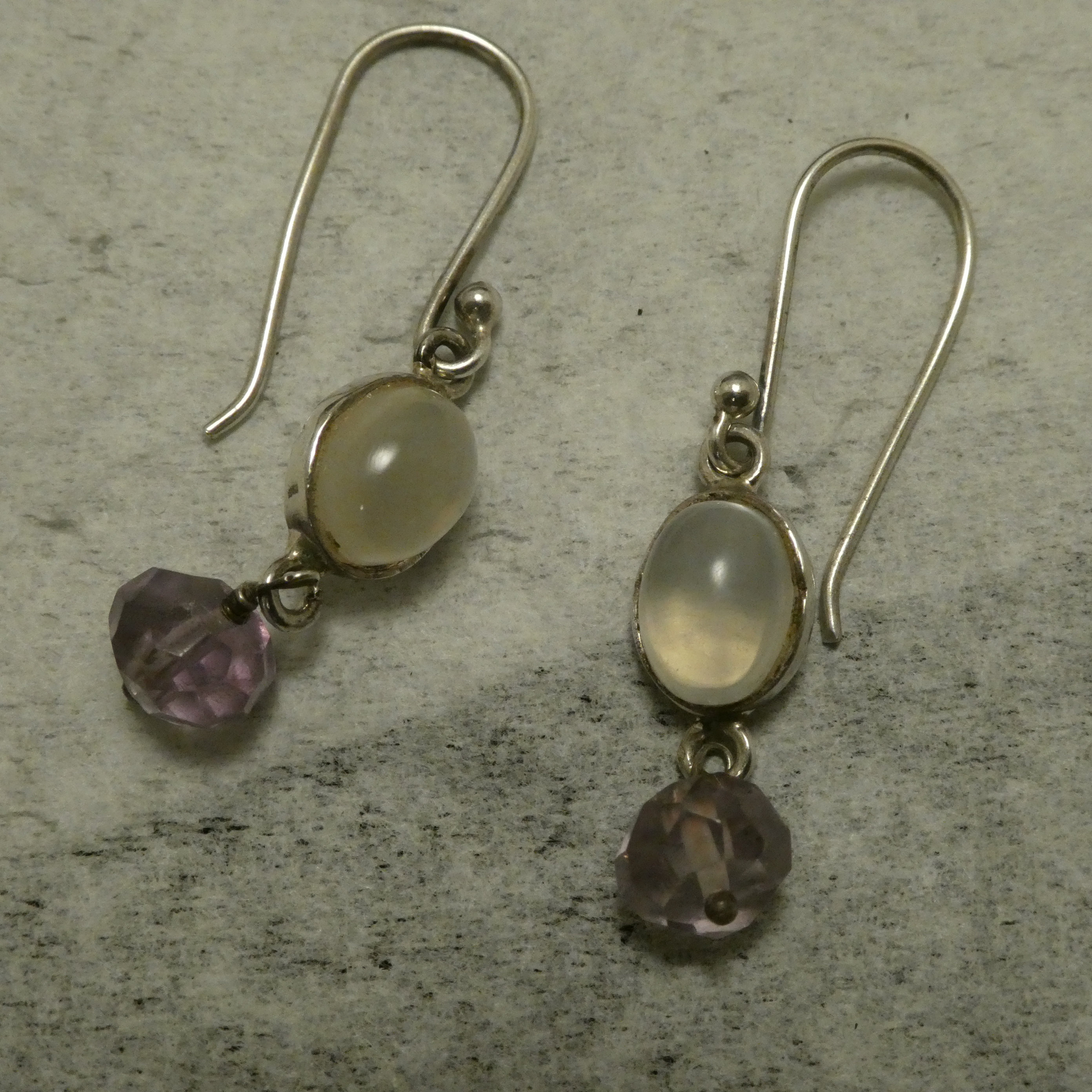 HOLD. Moonstone Silver Earrings, Cut Amethyst Drop