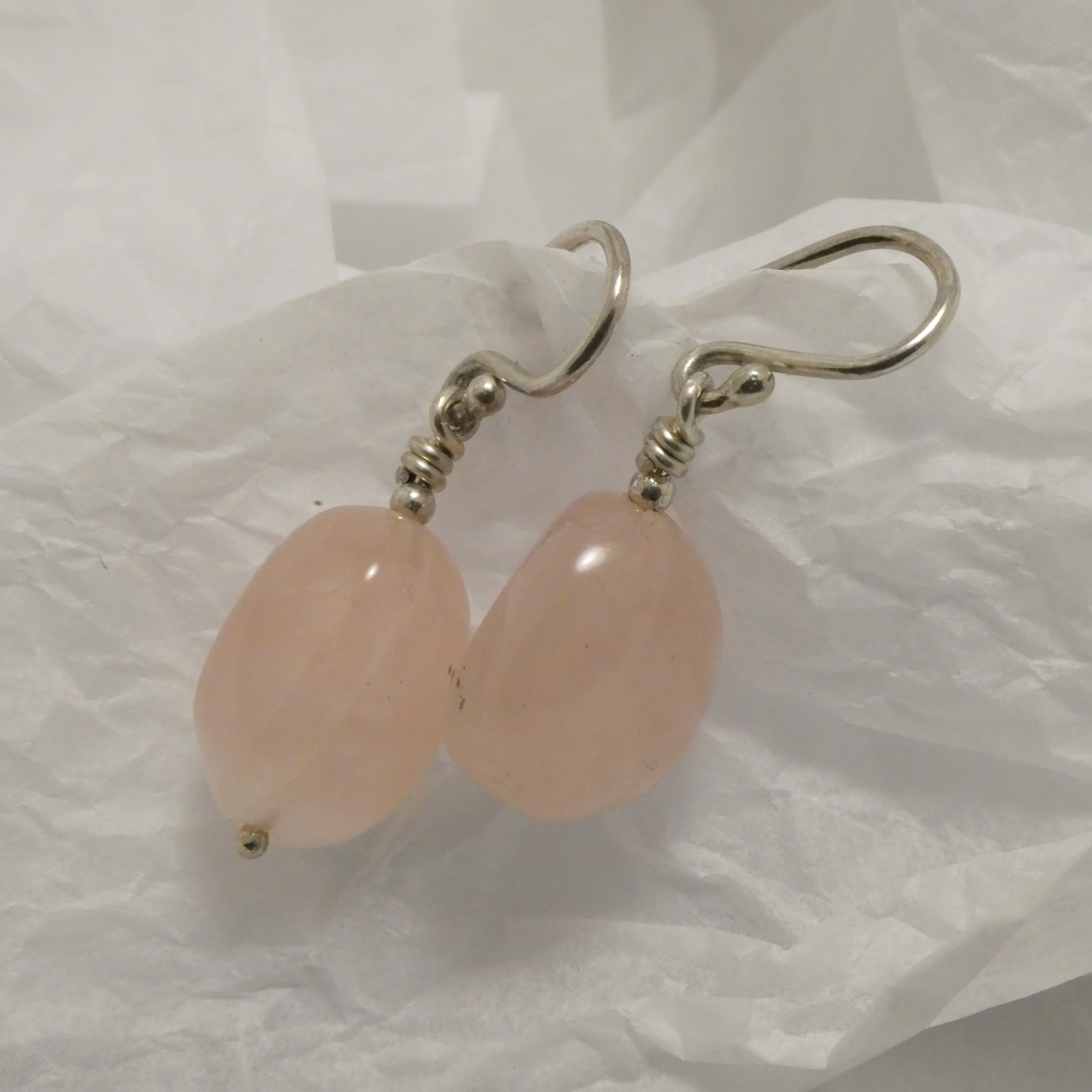 Rose Quartz Pebbles, Sydney-handmade Silver earrings.