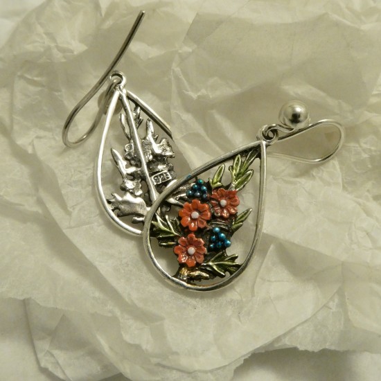 These earrings are crafted in Thailand and are probably cast rather than handmade, but the work involved in cleaning up the casts, giving the form clean definition before the hand painting and firing, shows a high degree of craftsmanship.