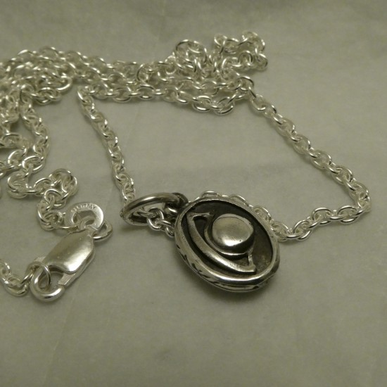Created in Sydney, 9mm across, 20mm total pendant length, 4.7mm thick and of a solid 3.5grams weight. On a sturdy Italian-made Sterling Silver cable chain of 45cms length. Price includes Silver chain.