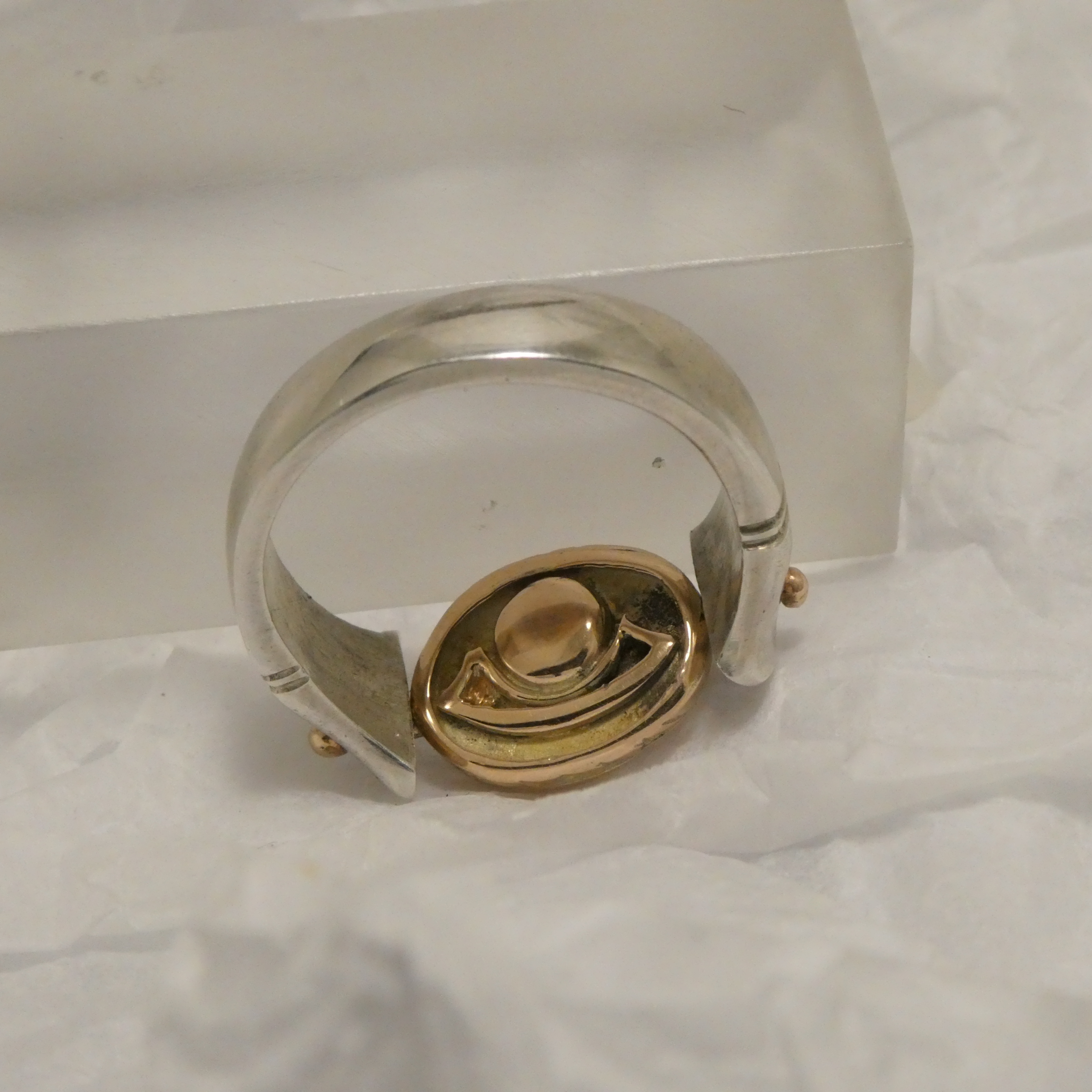 The Silver ring on which the Gold Scarab swivels, with its elegantly curved flared ends, is another design with its origin firmly in Ancient Egypt. One of the items excavated from the tomb of Tutankhamon was a Gold ring of this design, the vehicle for a Scarab carved in Lapis Lazuli.