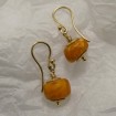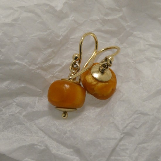 Small Amber pair, old handcut Tibetan yellow, or “butterscotch” Amber, nicely matched, originally from the Baltic Sea of Northern Europe, in lovely little earrings of 9ct Gold, all created and handcrafted in Sydney. (A large component of the cost of these earrings is in the 1.58 grams of 9ct Gold used.)