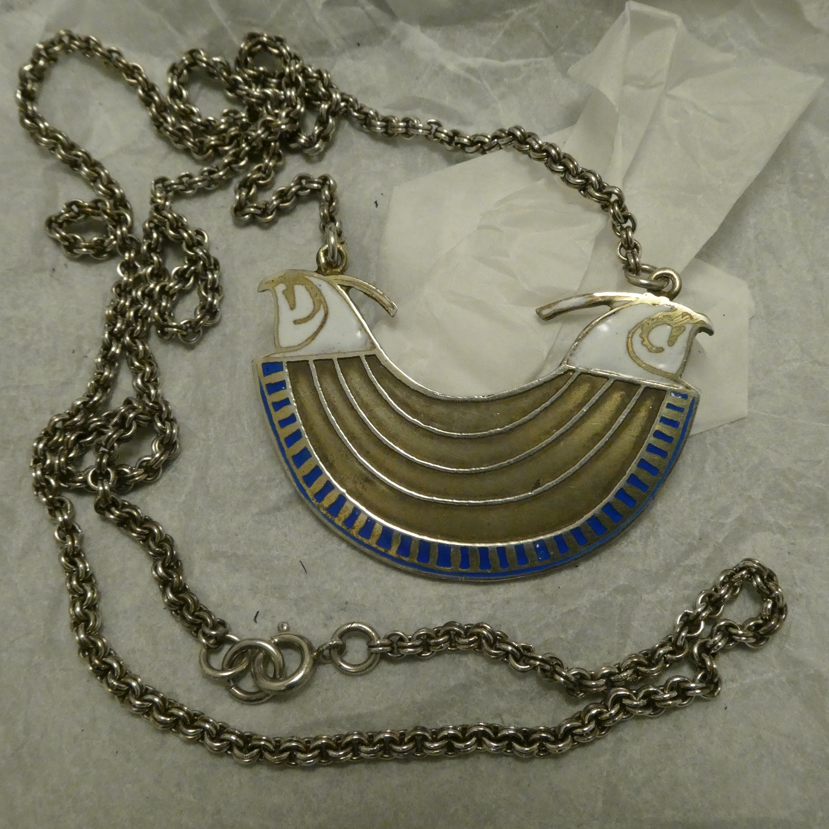 The excellent double-link Silver chain is an import, not Sydney-made. Silver chain of any type, let alone hand-worked AGrade Silver chain such as the above, has not been produced in Australia for decades; indeed, around the same period as the creation of our Two Falcon Enamelled Silver pendant, Victoria’s Austral Chain, the country’s last-standing and much-appreciated Silver chain producer, shut its doors without a buyer.