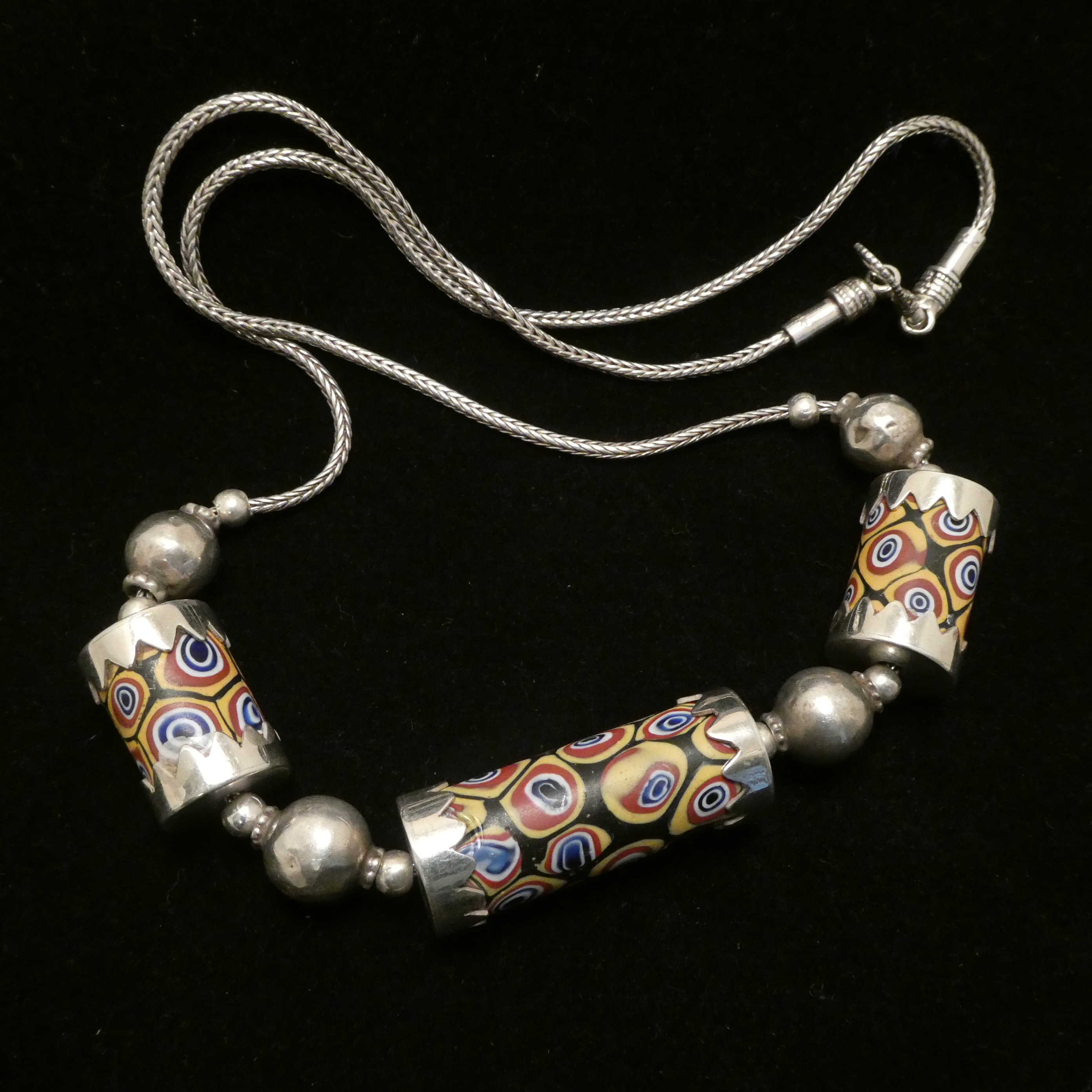 SOLD. Venetian Trade Beads, Old Glass, Silver Necklace